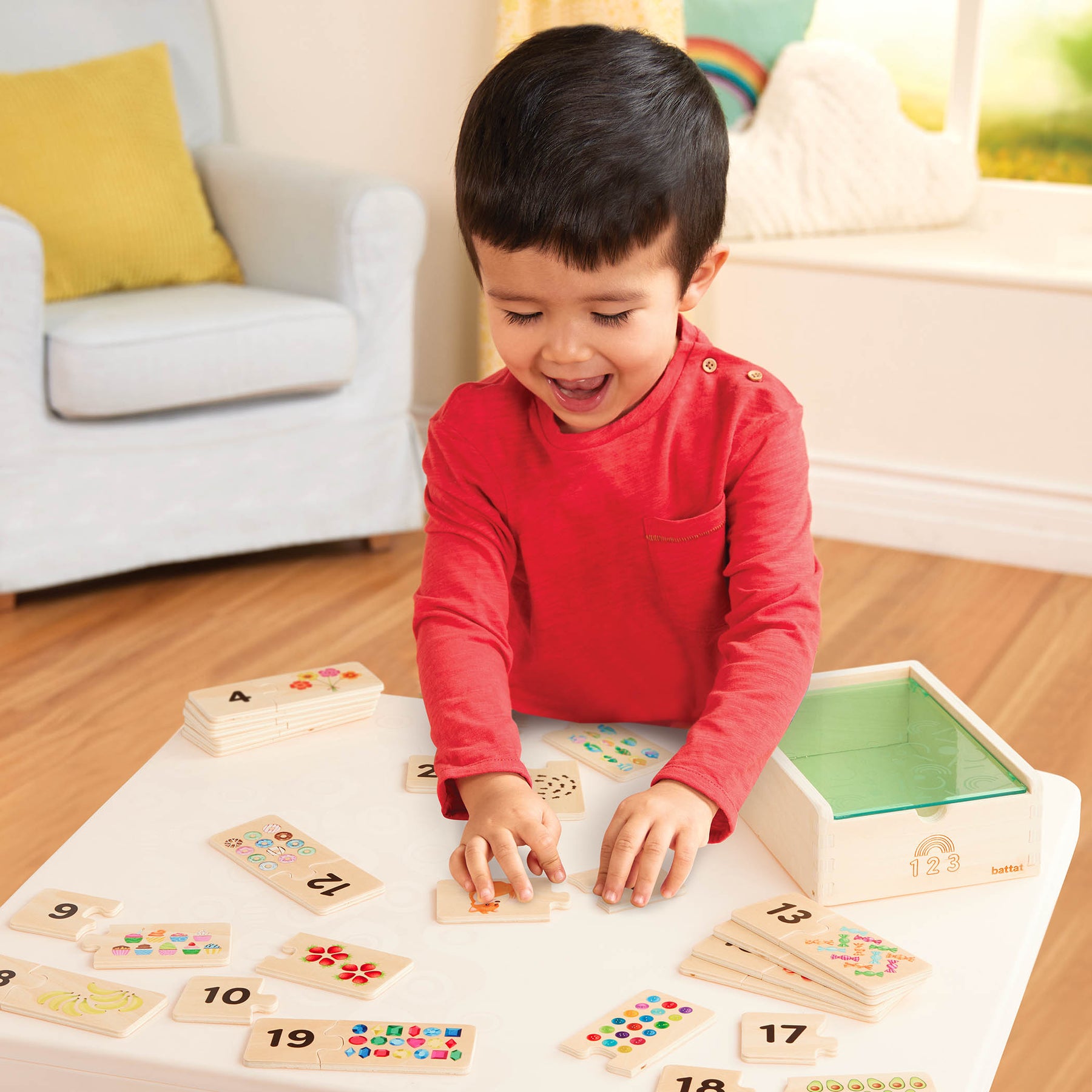 The One-Match 123s Puzzle Box is designed to empower kids to learn independently and at their own pace. Crafted from durable wood, each piece features a unique one-match design, allowing children to enhance number recognition, fine motor skills, and hand-eye coordination as they play! When playtime is over, tidying up is a breeze, with all pieces fitting snugly inside the box. Ideal for kids aged 3 and up, this kid-friendly puzzle fosters hours of active play and cognitive development. Invest in a timeless classic that ensures both fun and learning in one cleverly designed package!