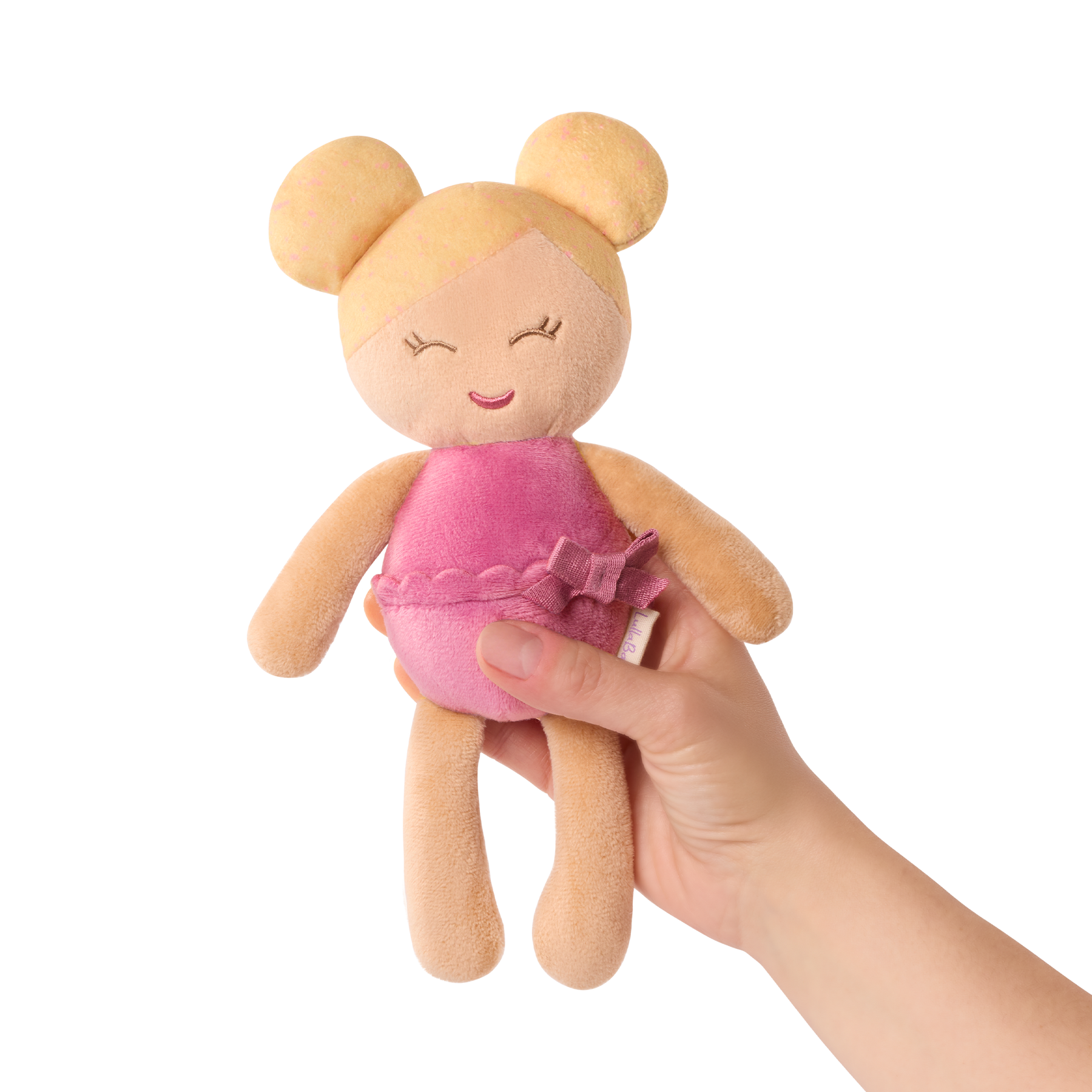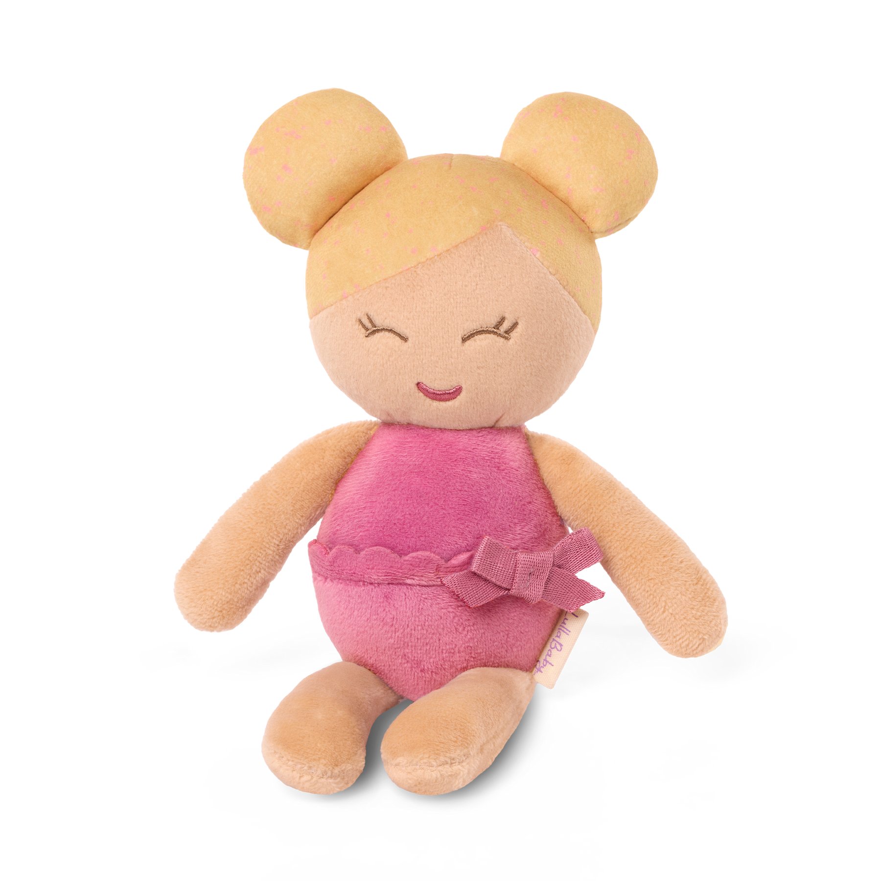 Keep little ones engaged and entertained during bathtime with an adorable LullaBaby bath doll made of ultra-soft plush for real water play. Kids can enjoy fun in the tub by role-playing bath routines and one-of-a-kind storytelling. This 8.5" bath doll is designed with a friendly face, blonde hair, and a cute bathtime outfit for lots of smiles and splish-splash memories. LullaBaby bath dolls are a must-have for parents looking to nurture young hearts and minds at an early age, encouraging imagination and inspiring kindness as kids play and grow with their baby dolls. Perfect for bathtime, bedtime, doll play, and more precious moments. Makes a wonderful gift for kids ages 2 years old and up. Machine washable. To dry after a bath, gently squeeze water out of the bath doll or tumble dry on low for an easy clean. Safety tested to meet all regulatory phthalates and BPA requirements.