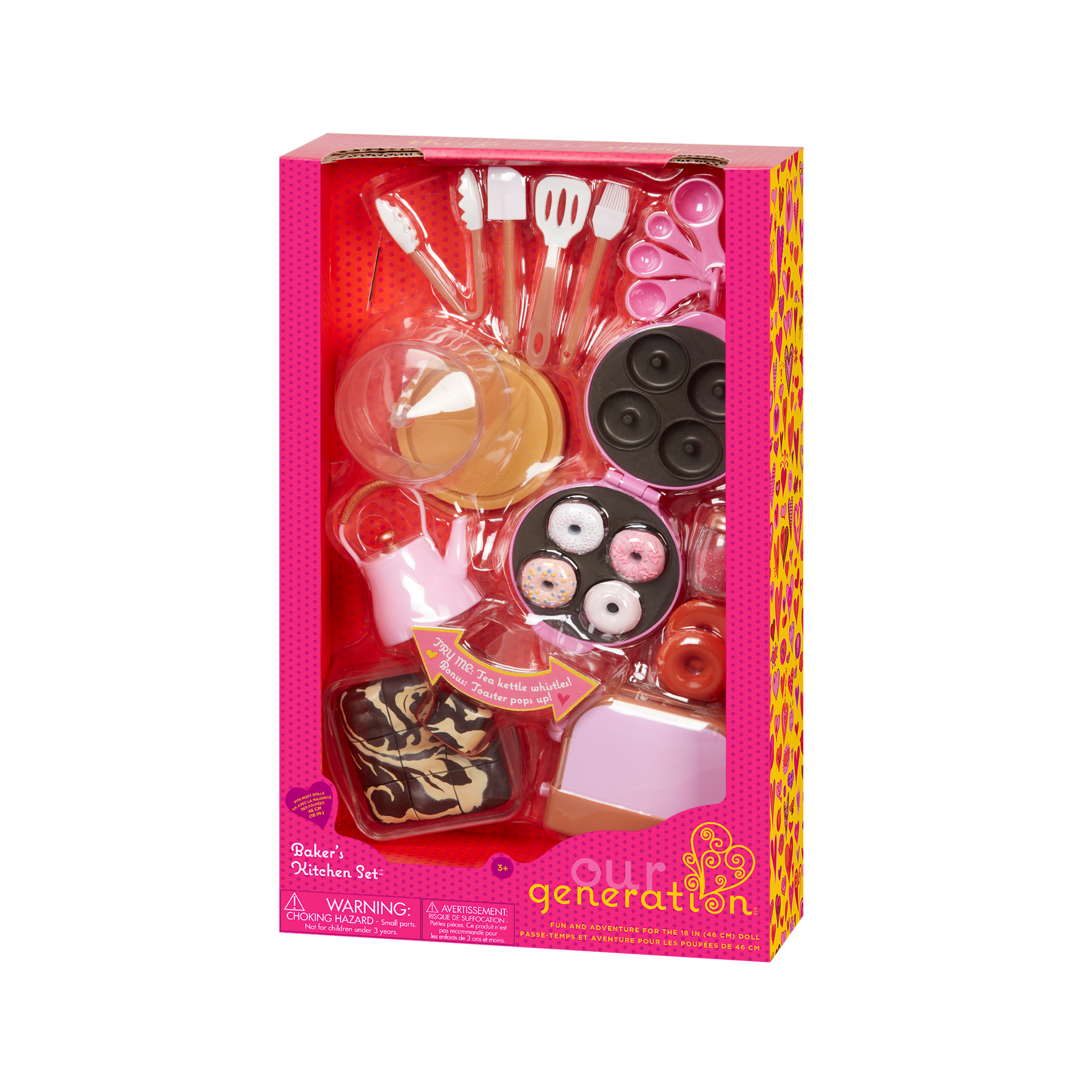 Adopt your very own pet Dalmatian and travel together with the Our Generation Hop In Dog Carrier! This set gives your 18-inch dolls the joy of having a puppy, and the excitement of keeping them by their side on every adventure! Easily put your pup in the dog carrier when it's time to explore. The inside features faux-fur lining to keep your pups extra comfy, and the straps make it easy to carry on any trip. Once you've arrived, clip the leash to the dog collar and enjoy fun walks around the neighborhood. The leash comfortably fits around your 18-inch doll's hand! Play a game of fetch with the toy ball and hand out treats when your loyal pal is being a good pup. Then place them back inside the dog carrier and head to your next destination! (Dolls sold separately)