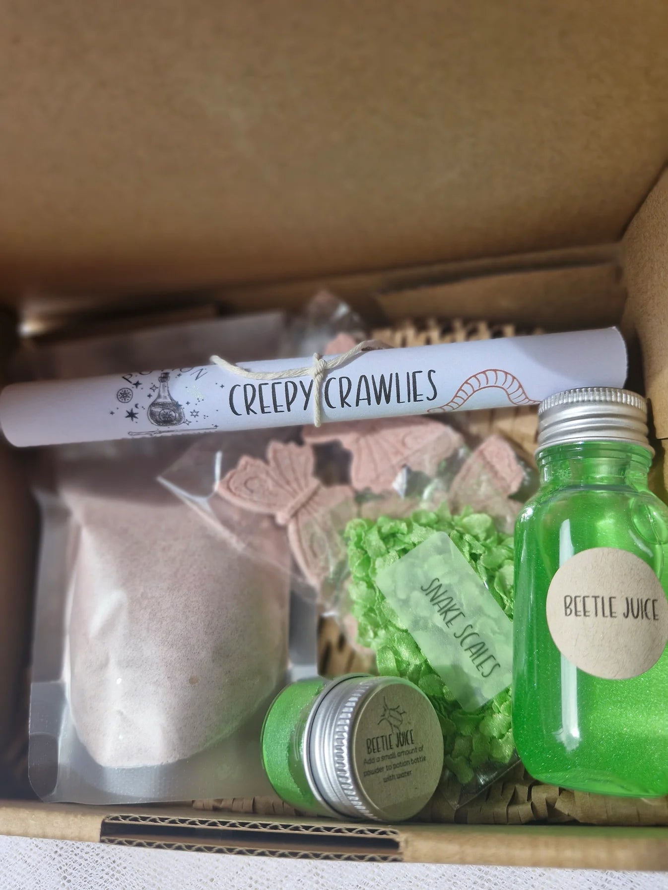 The contents of this Creepy Crawly potion kit are sure to make your skin crawl. For the kids who love to get dirty in the garden.