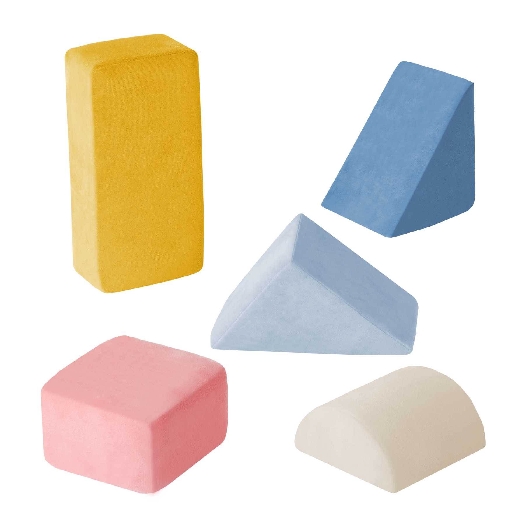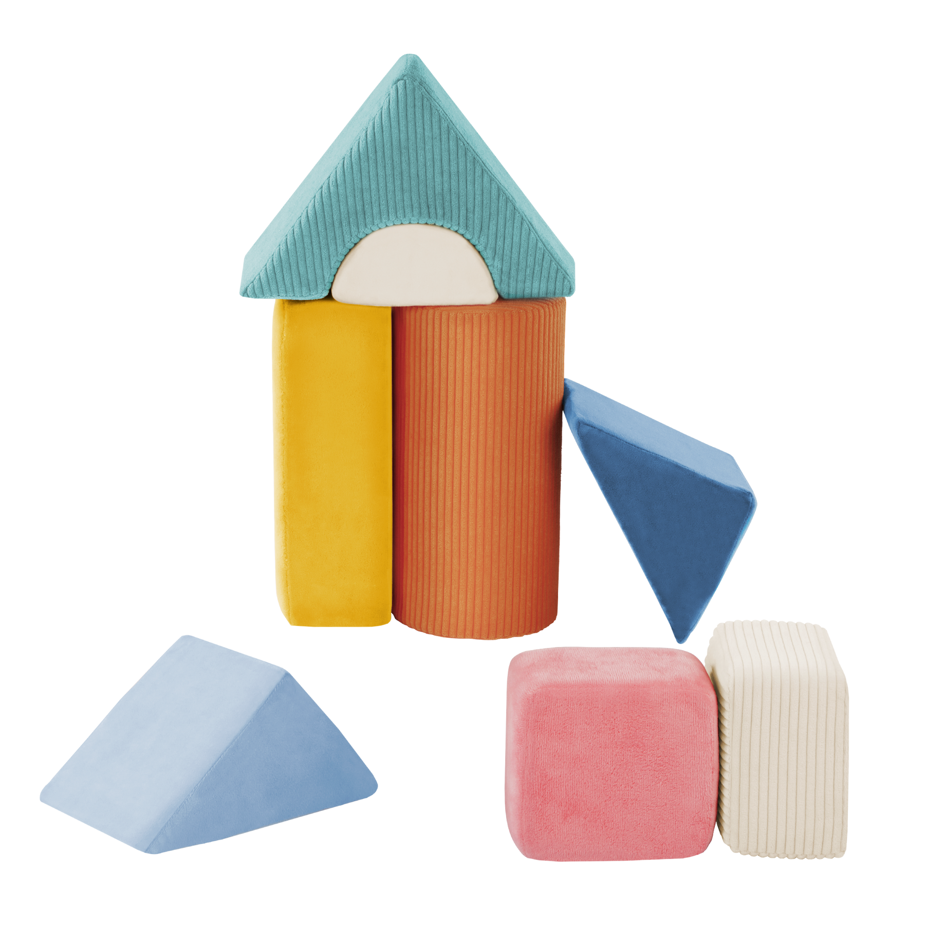 Stack, squish, snuggle, and play the days away with Tumble-y from Towers B. toys! These foam architectural blocks let little builders create soft and sensory masterpieces to stack up and knock down. Not only will kiddos love building towers (and tumbling 'em down), they’ll also get a sensory experience with the textured and tactile fabrics! As kids play, they can explore the shapes and gentle colors while they squeeze and snuggle this soft set. And besides having a great time, playing with Tumble-y Towers can help improve hand-eye coordination and encourage sensory development in babies and toddlers. Recommended for kids 6 months and over.