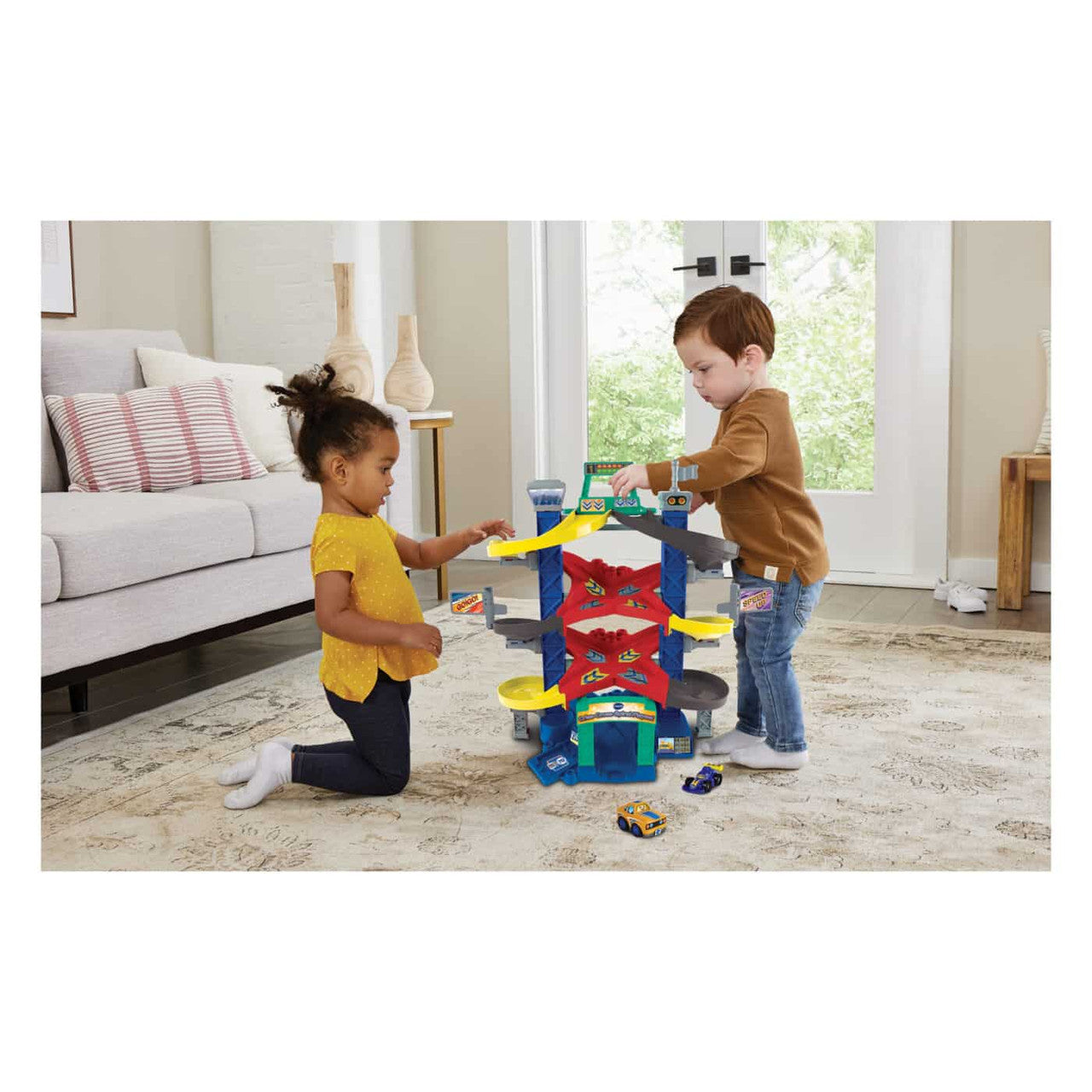 Get ready for endless racing fun with the Vtech Toot-Toot Drivers Criss-Cross Raceway! This engaging set includes a SmartPoint race car, a mini race car, and three SmartPoint locations, delivering thrilling excitement at every turn.