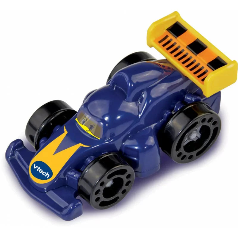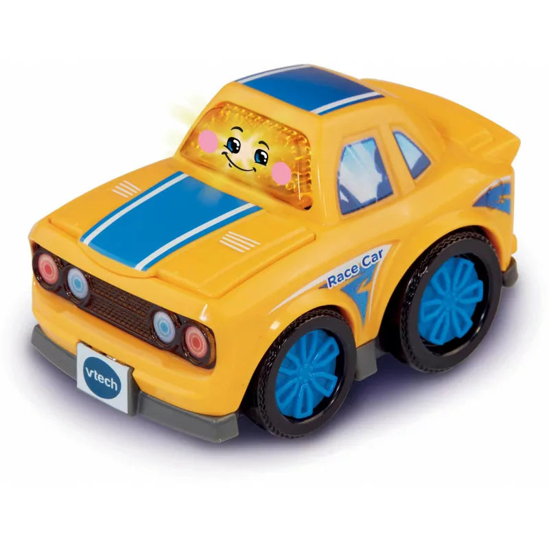 Kids can place the race car on SmartPoint locations of Vtech Toot Toot Drivers Criss Cross Raceway to hear cool phrases, sounds, and music, enhancing their imaginative play. The cute SmartPoint racer features a light-up face button that triggers entertaining phrases, three songs, and six fun melodies. Watch as both cars race to victory while enjoying engaging role-play and discovery.