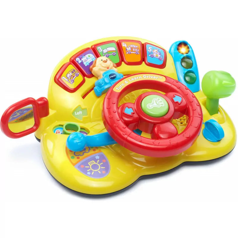 Your child will love pretending to drive using the steering wheel that causes a dog character to move back and forth.