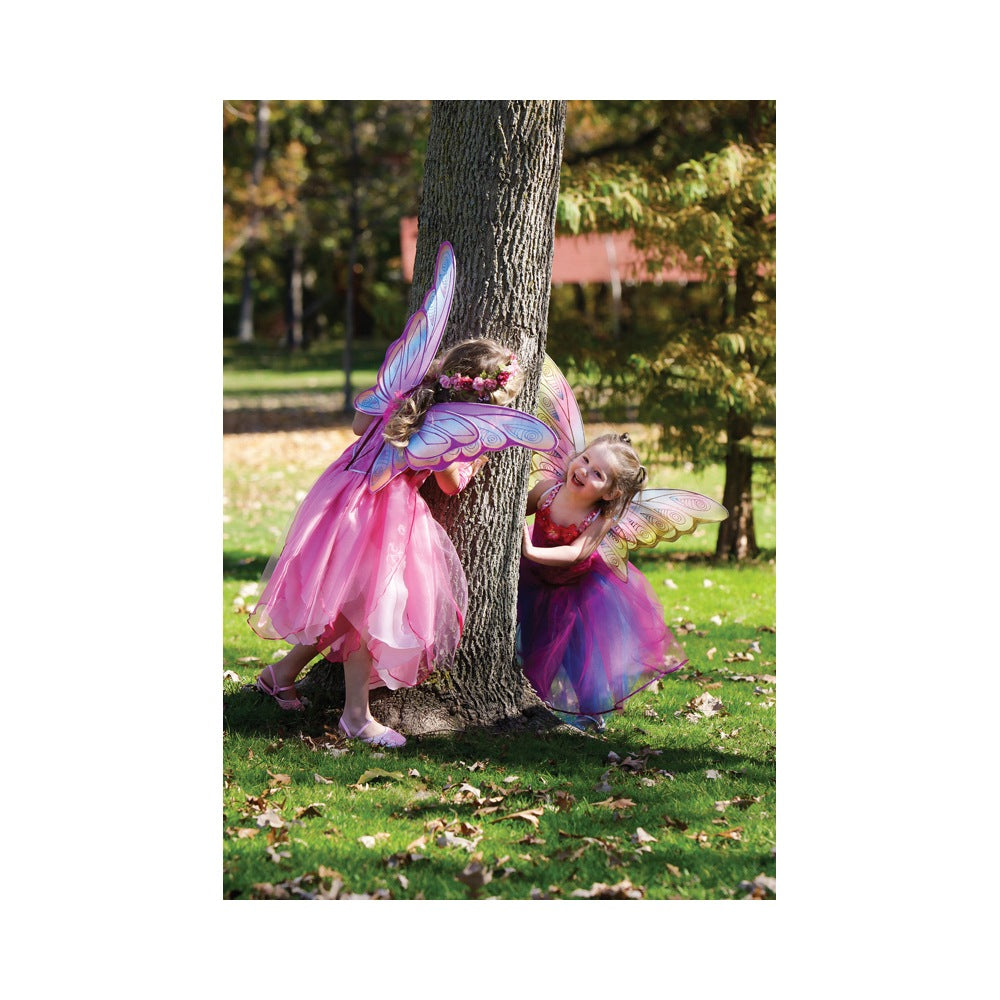 Featuring a 6-piece construction and a 3-tone base colour scheme with a 2-tone glitter accent, these wings are a true work of art. And with satin-lined elastic, they're comfortable to wear and perfect for hours of imaginative play.
