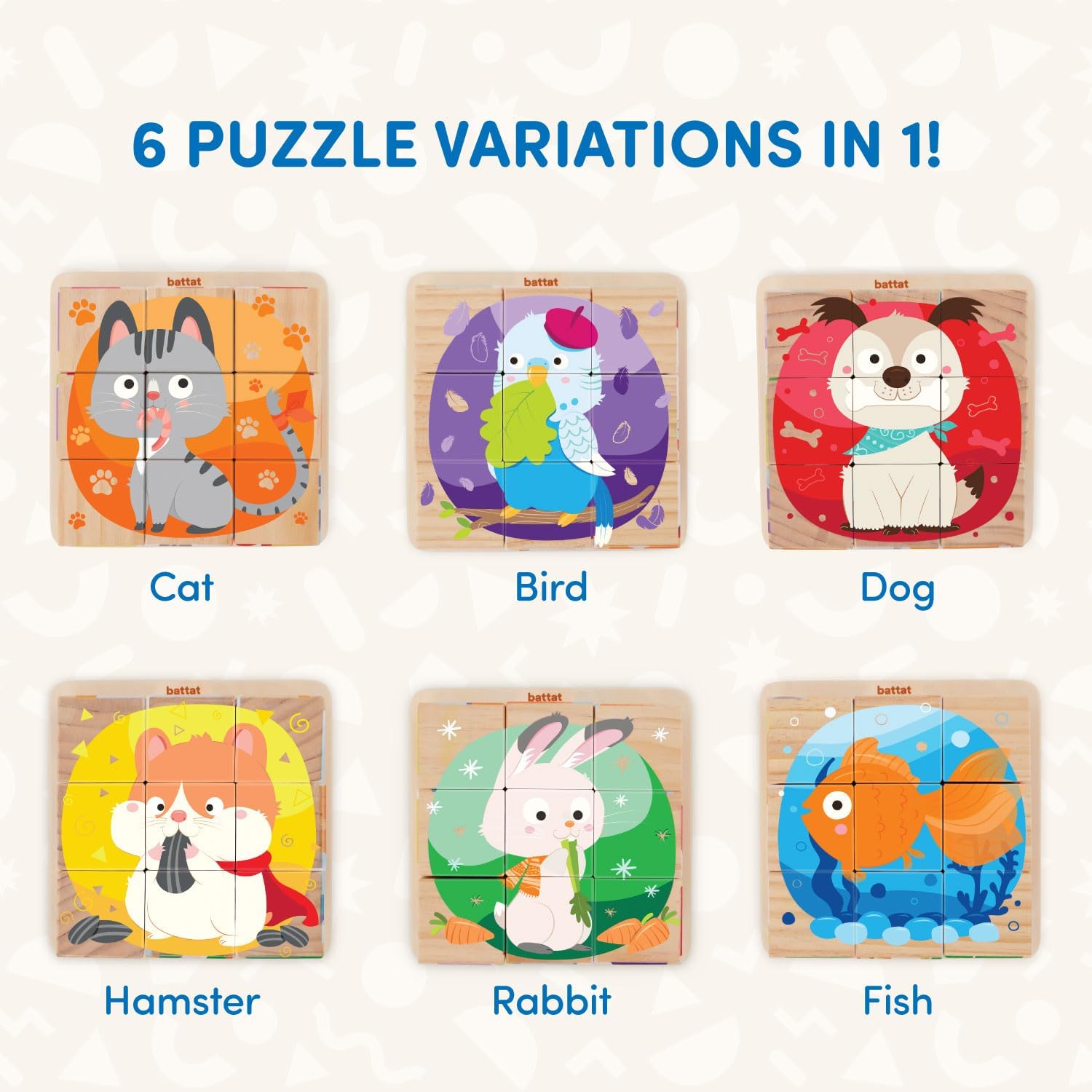 Dive into a world of imaginative discovery with this pet-themed 6-in-1 Puzzle Cube! This engaging toy offers endless puzzling fun as it can be completed in six different ways, sparking creativity and problem-solving. It’s a fantastic educational tool for toddlers aged 2 and up. Encourage the development of fine motor skills and hand-eye coordination with the durable, kid-friendly design crafted from quality wood. Watch as your little ones explore, learn, and play, creating a foundation for lifelong learning!