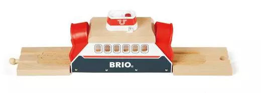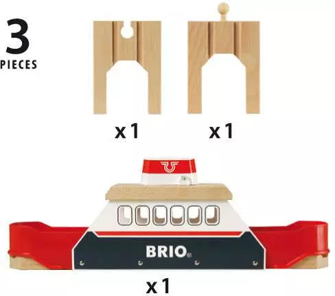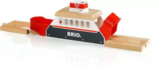 Ship Ahoy! Transport the train on to dry land with the BRIO Ferry. The ship features light and sound that is activated with a simple push of a button. With the two docking tracks, the ferry door is opened upon arrival. Please disembark. This item includes 1x Ferry, 2x Docking tracks and measures 36.6 x 7 x 9.7cm