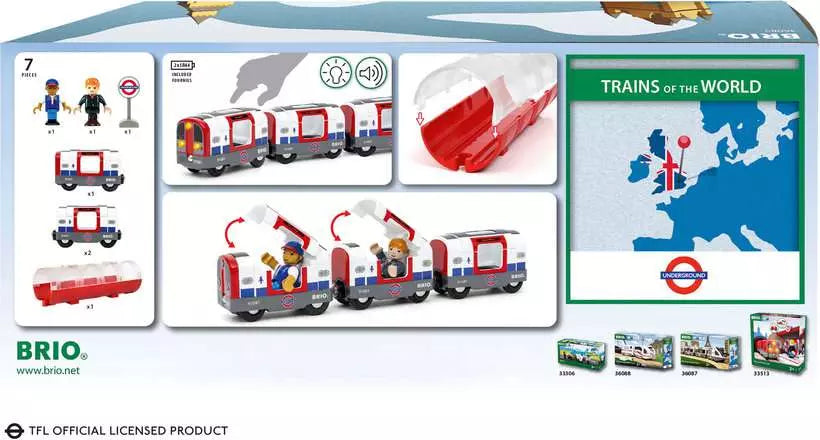 Mind the gap as you board the 36085 London Underground Train – part of the Trains of the World series. This metro train set includes the iconic red, white and blue train, a tube tunnel and two characters. Push the train to activate its lights and sounds and recreate the London Underground experience, which first opened in 1863. Explore other iconic railway routes and famous trains from all around the world with the rest of the Trains of World series.