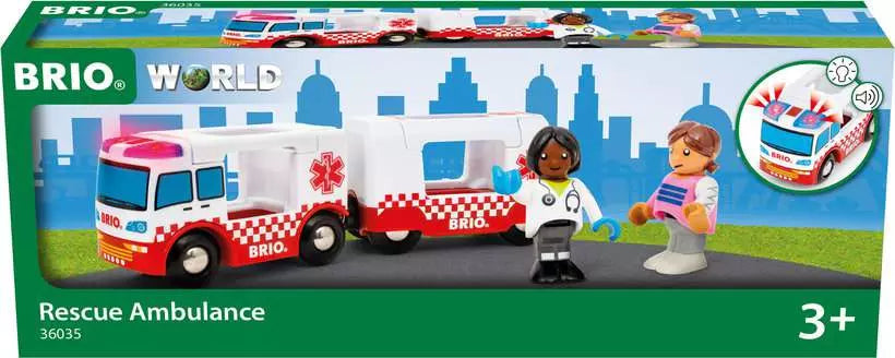 There’s been an accident. Speed to the scene in the 36035 Rescue Ambulance. Place the paramedic in the driver’s seat, turn on the working sirens and race down the streets. With flashing lights and a loud siren sound, everyone will know that the doctor is on their way. Help the injured person into the back of the ambulance and get them safely back to the hospital before the next rescue mission begins.