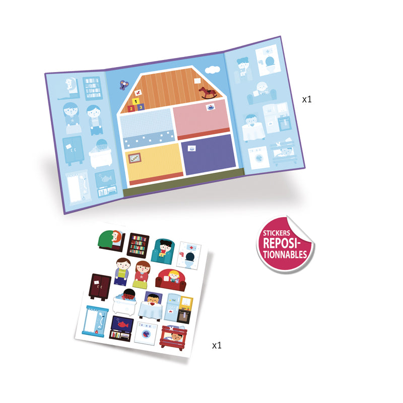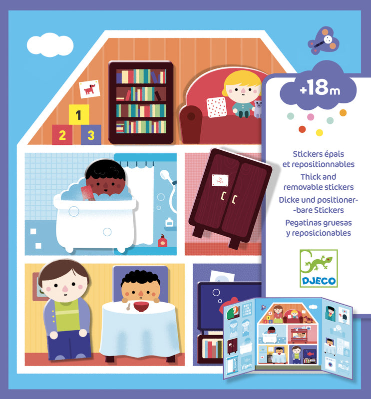 This Djeco House Stickers set includes a folder with a gorgeous illustration for toddlers and preschoolers to decorate with repositionable stickers. Little fingers can easily peel and restick the specially designed thick stickers. Perfect as a portable activity set whilst on the go, out to dinner, on a plane and in the car. Allows for experimentation with different textures and patterns. Offers the opportunity for children to learn about and discuss different rooms in the house, assorted household items, and experiment with imaginative storytelling.