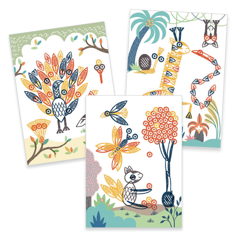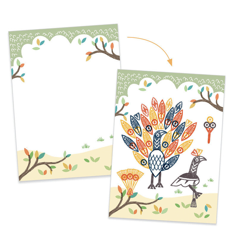 This set allows children to compose their own characters by combining shapes and varying colours. They progressively ink the stamps and print the patterns to embellish the scenes provided. Children have fun switching up the combinations and letting their imagination run wild. The scenes come to life with something different every time! The set includes 14 thick, easy-to-hold stamps and 4 easy-wash ink colours.