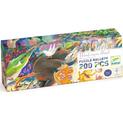 This 200 piece puzzle creates a beautiful scene of merry animals performing in the Woods Music Band. This product also includes a full size poster of the puzzle's delightful illustration by Soyung Lee.