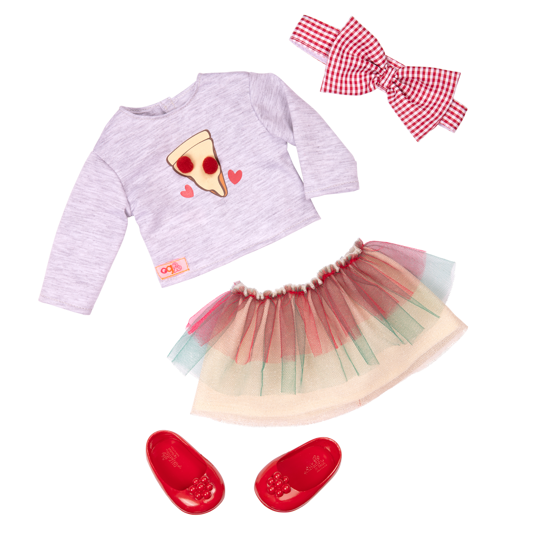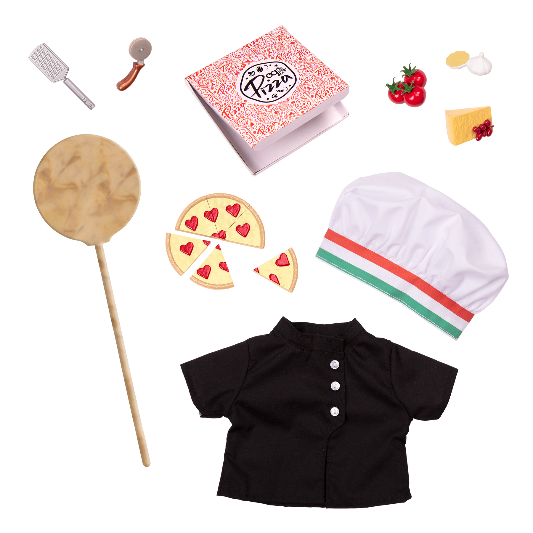 Cook up pizza party adventures with Francesca! This Our Generation 18-inch chef doll has long brown hair that's fun to brush and style, dark-brown eyes that open and close, and is posable! She can rotate her arms and legs to easily change outfits, and she can also bend her knees and elbows to prepare delicious pizza for all her friends - FRANTASTIC! Once Francesca has her chef's hat and jacket on, it's time to start cooking. Add tomato sauce and cheesy toppings with the toy food accessories and slide the pizza onto the pizza peel when it's time to bake. Next stop? Pizza Party! Carry the pizza in the pizza box and use the rolling slicer to "slice" each piece - all 6 slices can be removed to serve to best friends! Change Francesca into her fun pizza-print top and follow her journey in the beautifully illustrated storybook, "Once Upon A Pizza", as she prepares to make her most magical recipe ever. The easy-to-read chapters are perfect for younger readers, and it makes for a great bedtime story too!