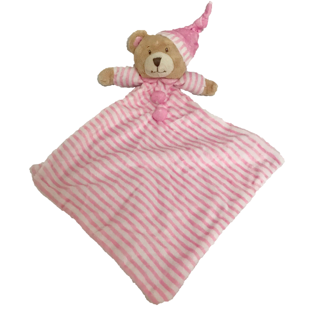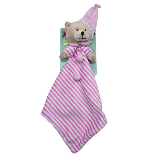 One of our most popular Huggable Toys nursery items, this cuddly security blanket is the perfect companion for any newborn! Made with incredibly soft velour (to the highest of quality standards), the Baby Bear Blankie provides both comfort and sensory awakening with the bear’s head containing a rattle for your little one. Snuggle away with Baby Bear Blankie Pink.