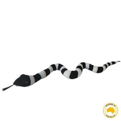 Huggable Toys’ Bowie Snake might look every bit the s-s-scary snake, but don’t be fooled—he’s all cuddles and no bite! Inspired by Australia’s iconic bandy-bandy snake, Bowie features striking black stripes on a super soft velour body, making him both realistic and irresistibly huggable.