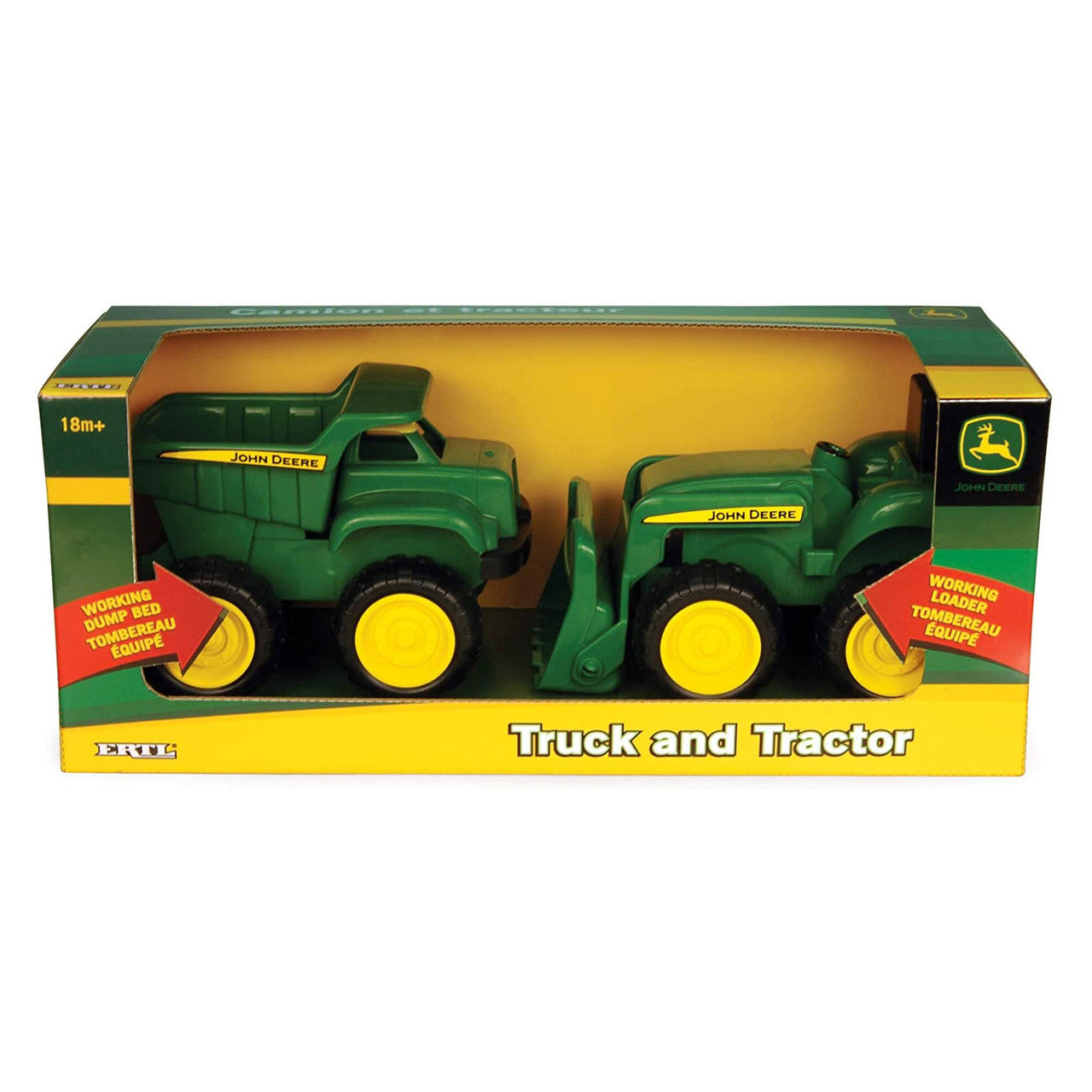 This John Deere 6" duo is perfect for the sandbox because of its durable plastic construction and child friendly designs. Outfitted in the popular John Deere Green and yellow color scheme, this dump truck and tractor are at home whether inside or in the sandbox or the beach! Each vehicle has functional parts which includes a moving dump bed and a front loader. Designed for hours of outdoor fun!