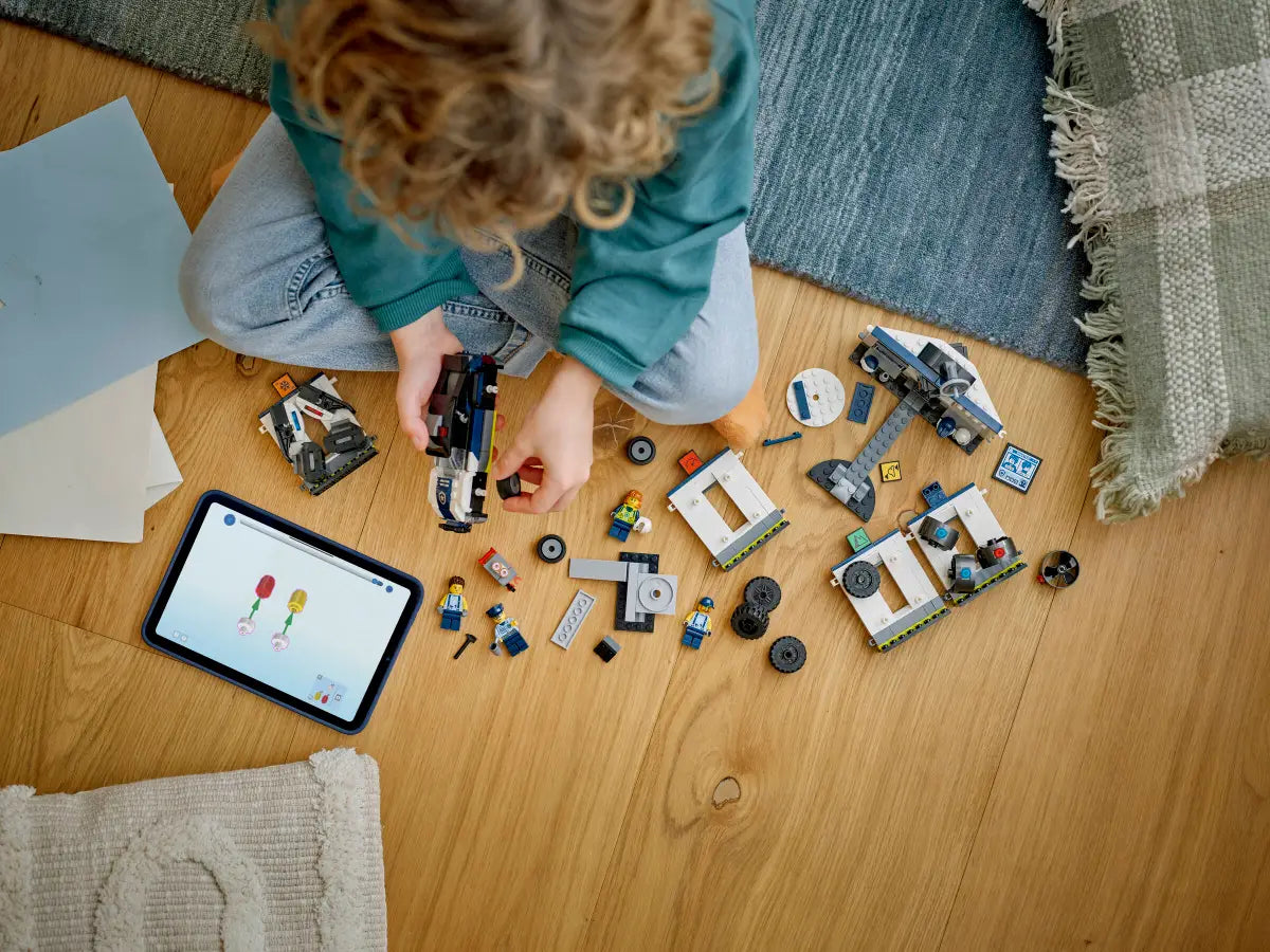 This police toy construction set includes digital instructions in the LEGO Builder app. Here, kids can zoom in and rotate models in 3D and track their progress as they build.