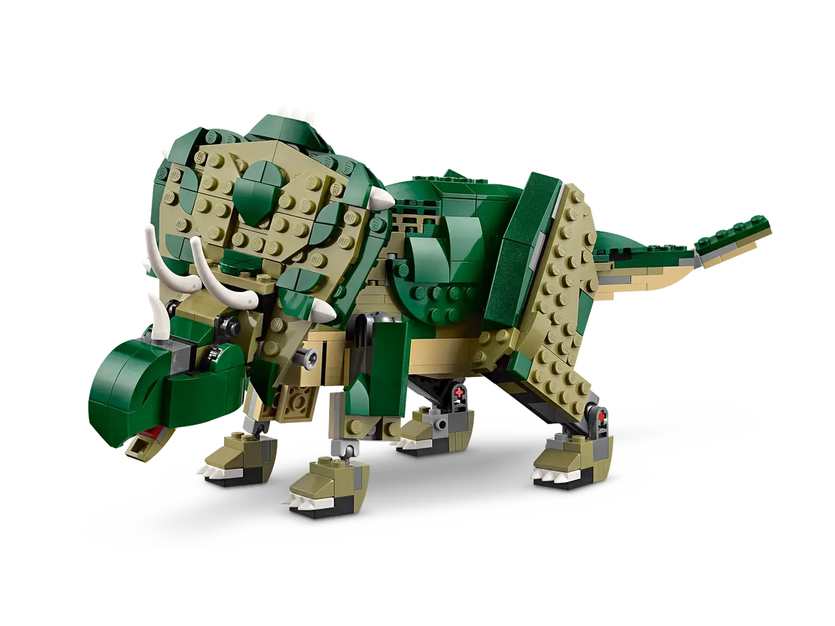 This LEGO® dinosaur toy building set gives kids a world of exciting play possibilities with 3 different dinosaur toys to build using the same bricks. They can create a posable T. rex, rebuild it into a fearsome triceratops with 3 horns, or turn it into a pterodactyl with large movable wings.