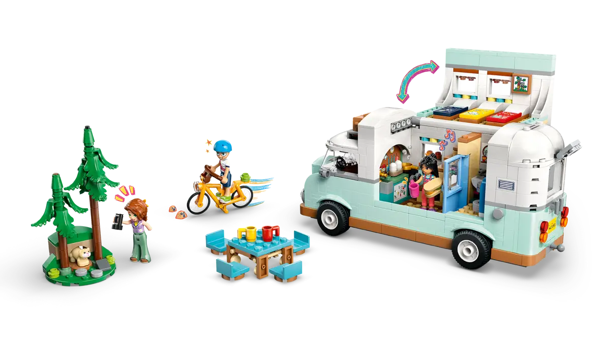 - Camping role play – This Friendship Camper Van Adventure building set for girls and boys aged 7 and up comes with 3 minidolls and a ferret figure for kids who love to tell creative friendship stories