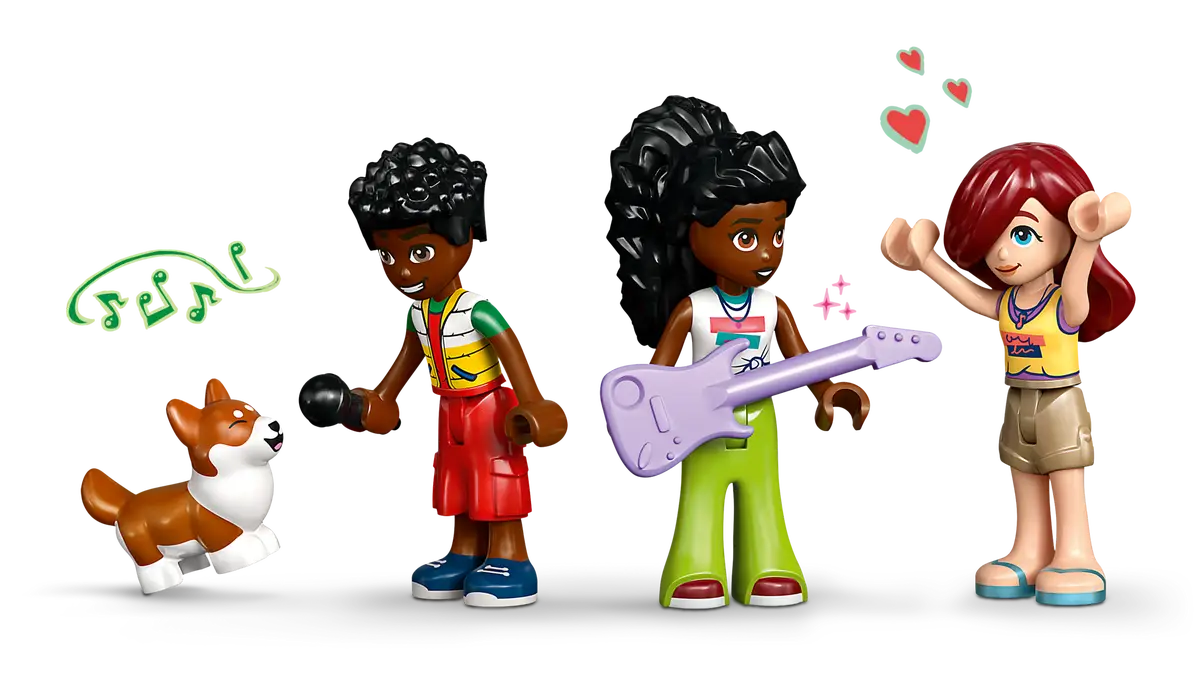 - 3 LEGO® Friends characters and corgi figure – This set is packed with personality and comes with Paisley, Zac and Elsa D minidolls, a corgi figure, musical note mascot, piano-key staircase and more