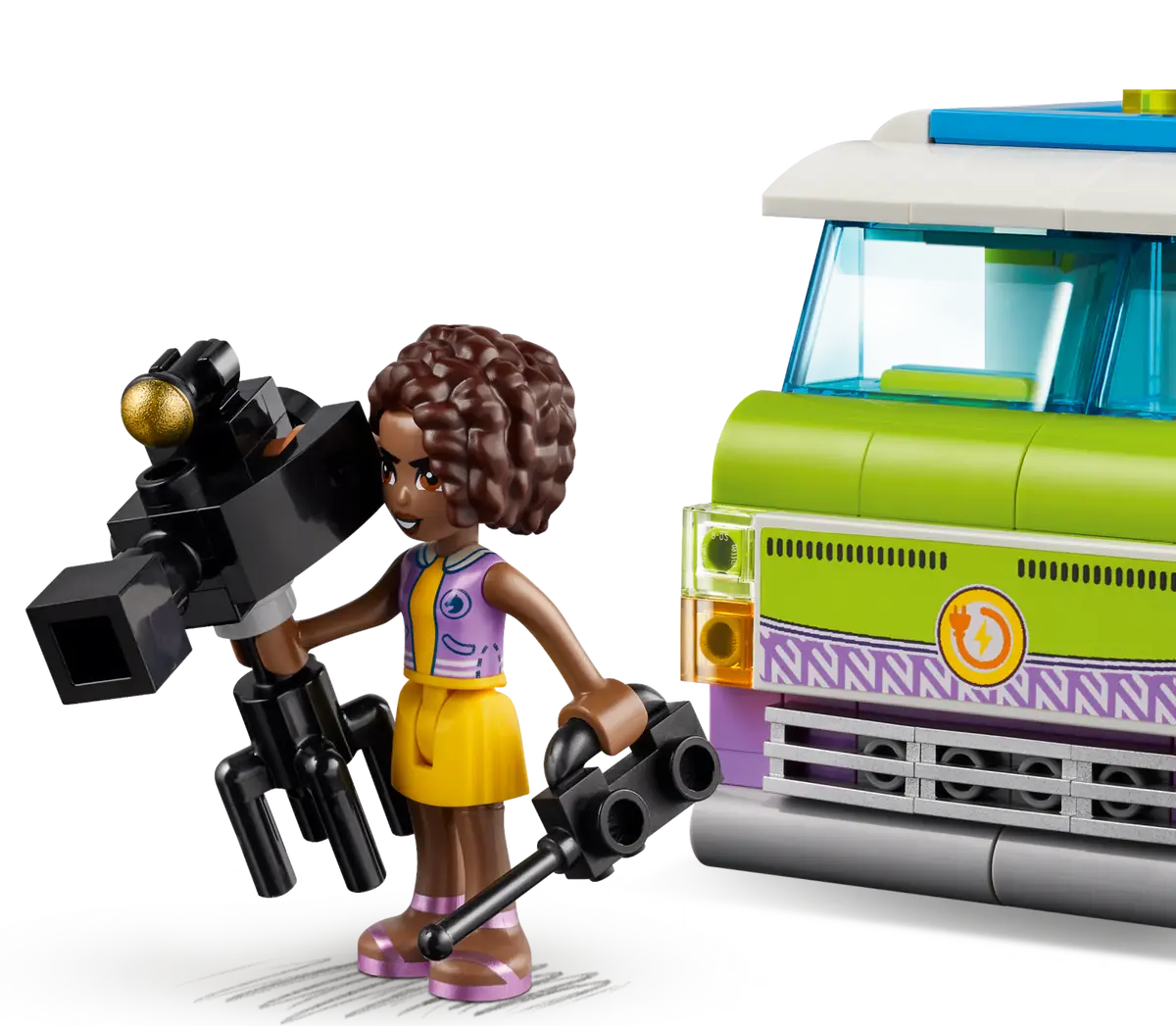 Kids who love role play and wildlife will find lots of inspiration in this LEGO® Friends Newsroom Van (41749) set for ages 6 and up. Hardworking Aliya is committed to reporting the latest news for the community center. Inside the van there’s everything Aliya needs to create and share news stories, including screens, lights, cameras, microphones, and a notebook and pen. Kids can tell the unfolding story as a logger arrives to cut down a tree. After filming the story, kids can move Aliya into thecontrol room inside the van to edit and broadcast the news.