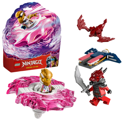 The small LEGO set also comes with 2 minifigures: Sora , who rides inside the dragon Spinjitzu spinner and has a sword accessory, a villainous Dragonian Warrior with his own sword accessory, plus a small dragon critter model. Kids can enjoy great role-play action as they stage good vs. evil battles with these popular NINJAGO characters.