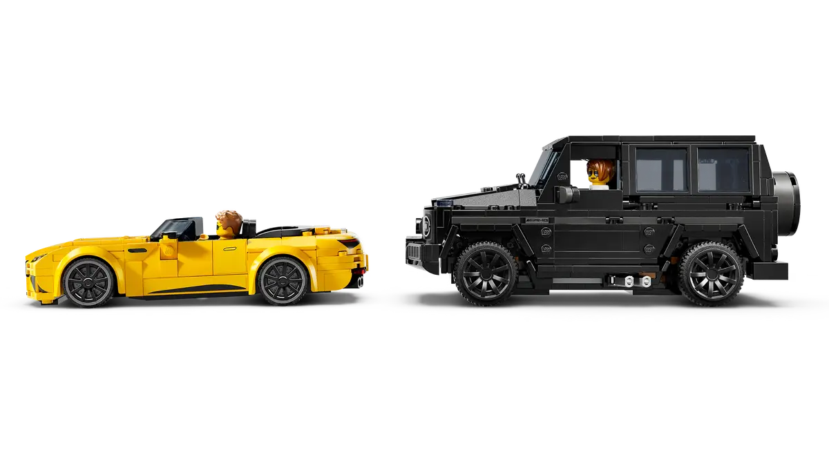 The Mercedes-AMG G 63 black G-class and the Mercedes-AMG SL 63 yellow convertible roadster models both include authentic design details from the real-life versions, including front grilles, bonnets, and interior features. Each Mercedes-AMG toy also comes with a driver minifigure for kids to place behind the wheel to enjoy races on the track.