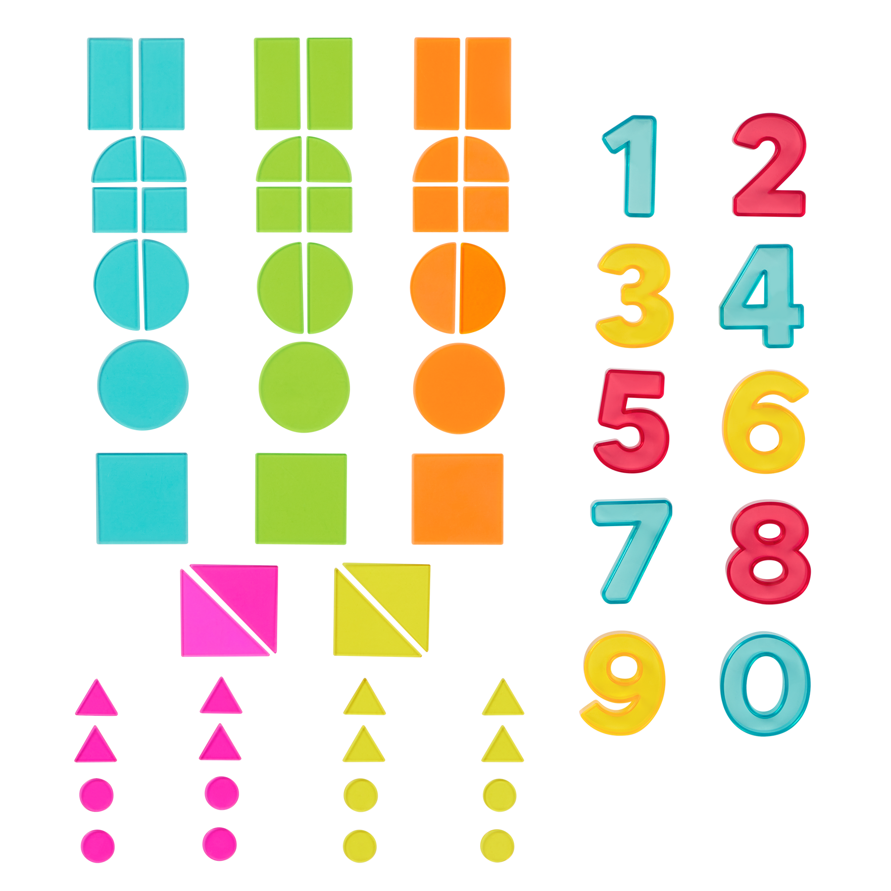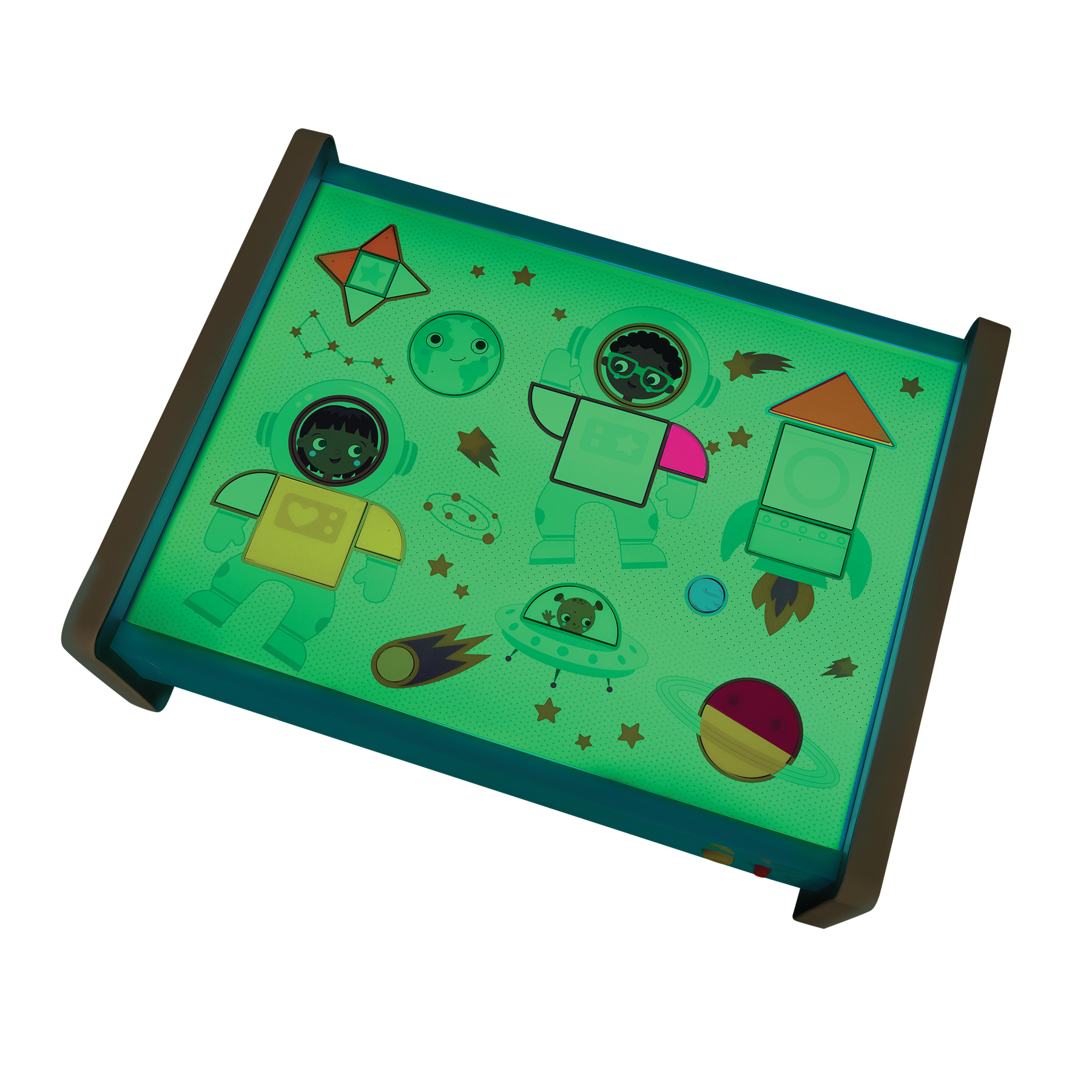 Light up and add color to learning with the Look & Shine lightbox playset from B. toys! Make playtime shine with this educational lightbox, featuring loads of hands-on and screen-free playtime opportunities. Kids can explore 50 translucent shapes and 10 numbers on the glowing surface of the lightbox, but the magic really happens with the 3 transparency sheets! Match, trace, and create over and over again, thanks to the included dry-erase markers — and then transform everything with the lightbox's 5 different colors! As kids play, they'll be practicing counting, pattern recognition, and exercising their fine motor skills and creativity. This engaging playset can be powered by USB-C (cable not included) for endless fun, or even keep shinin' on the go thanks to battery power (6 x AA batteries are required, not included). Recommended for children 3 years old and over.
