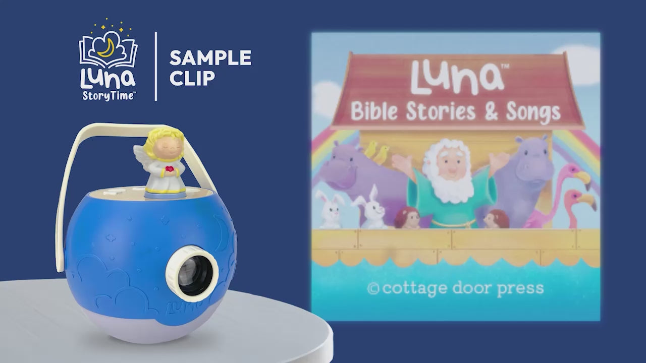 Share moments of faith, comfort, and inspiration with six beautifully narrated Bible stories, uplifting songs, and vivid projected imagery that bring timeless lessons to life with this Angel figurine cartridge. From creation to courage and blessings, this collection supports calm routines, early literacy, and spiritual growth—all through gentle narration, expressive visuals, and screen-free storytelling. Perfect for bedtime, Sunday mornings, or quiet reflection throughout the day.