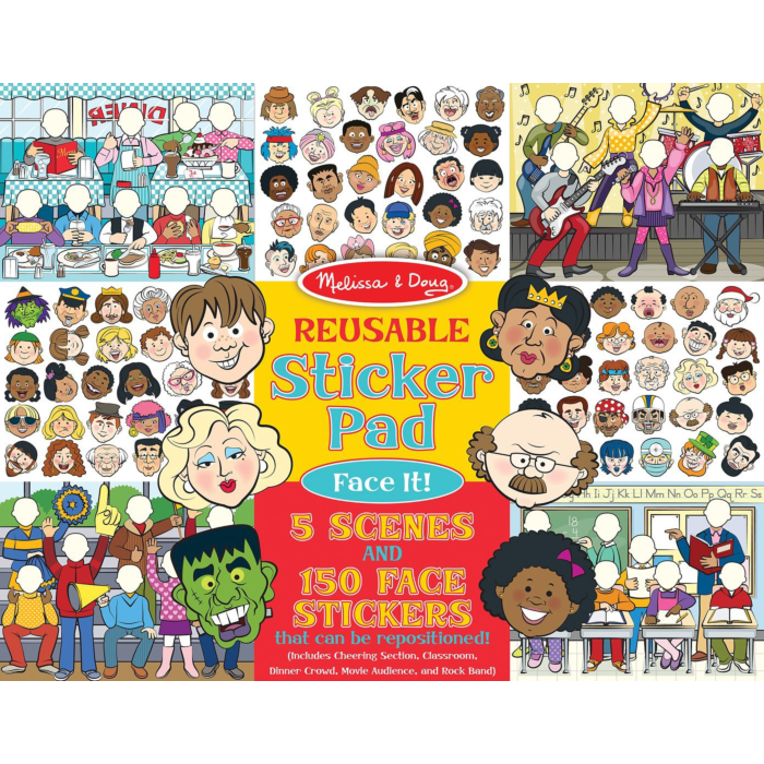 In this light-hearted sticker activity pad, kids put the finishing touches on five crowds of characters. Each sticker features a different funny face, and every scene features lots of bodies to put them on. Use the stickers to fill a scene with unique characters – then change them around to mix up the crowd! The funny faces and busy scenes combine for countless possibilities and hilarious results. Contains 150 reusable stickers to fill five reusable play scenes.
