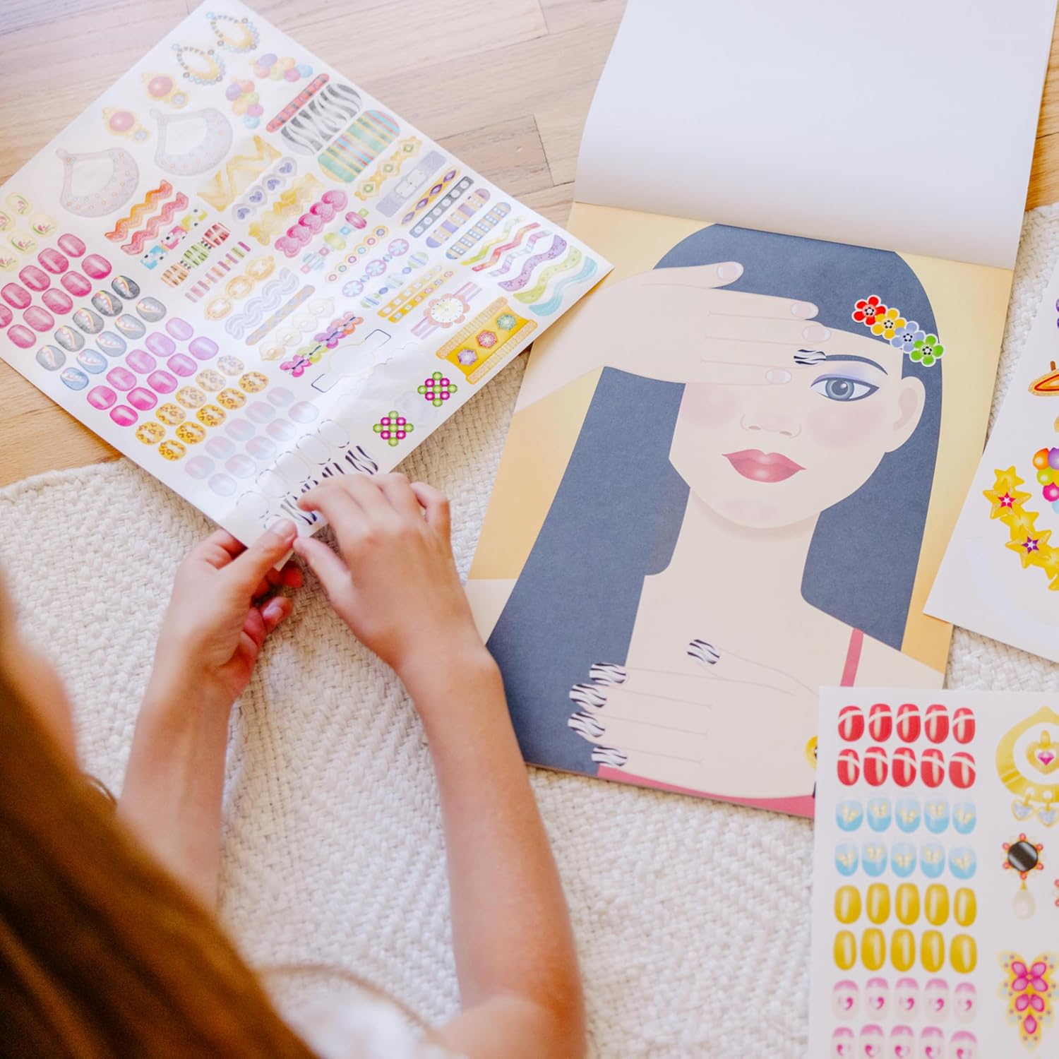 With over 360 stickers in glamorous, glimmering designs, young stylists can transform illustrated models from simple to sensational. Just use the glittering accessories stickers to fill 15 colourful background pages and make your own fabulous fashion spreads!