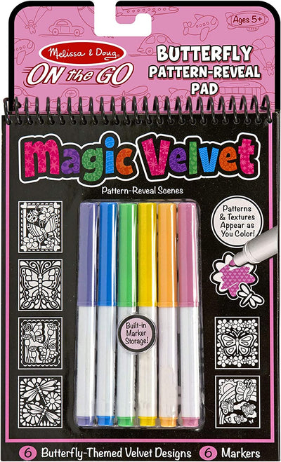 Magic Velvet coloring scenes are filled with special effects! The velvet-flocked backgrounds create amazing contrast with the six vibrant marker colors. And hidden patterns appear when you color in the scenes!