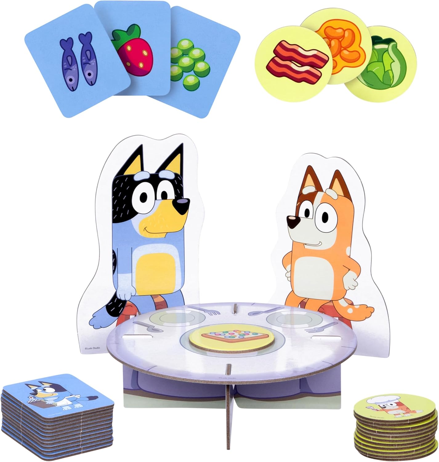 Join Bluey and Bingo as they help Dad prepare a special dinner date for Mum by matching pairs of food cards to create the perfect meal. With an interactive table and Mum and Dad figures included, kids can serve up fun while diving into imaginative roleplay.