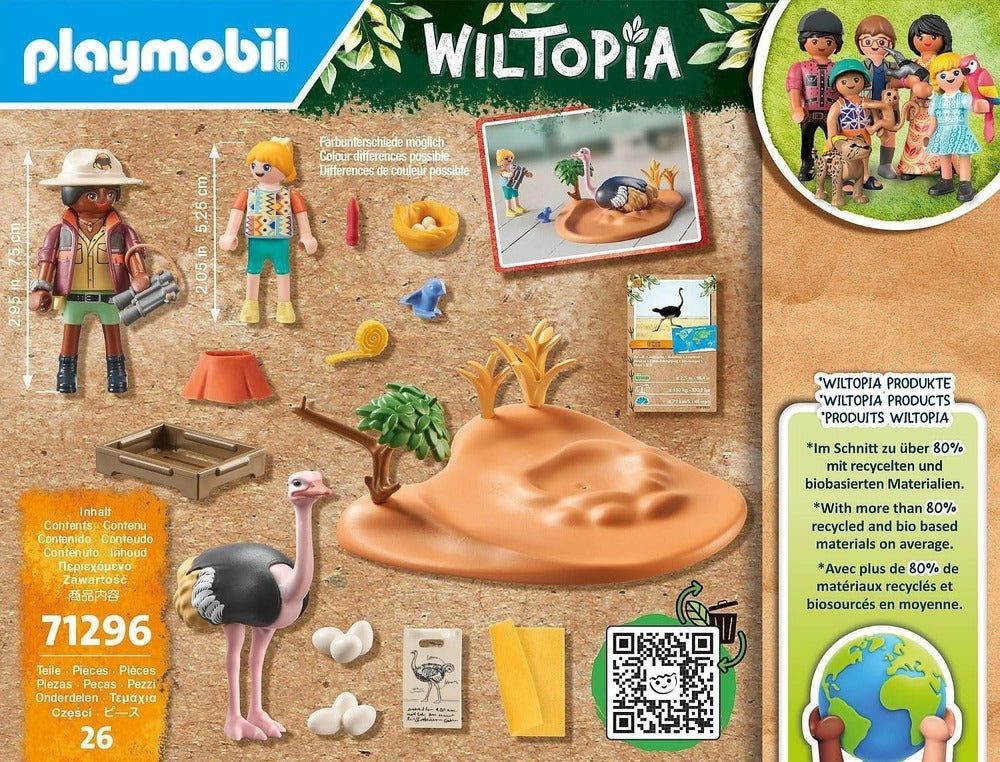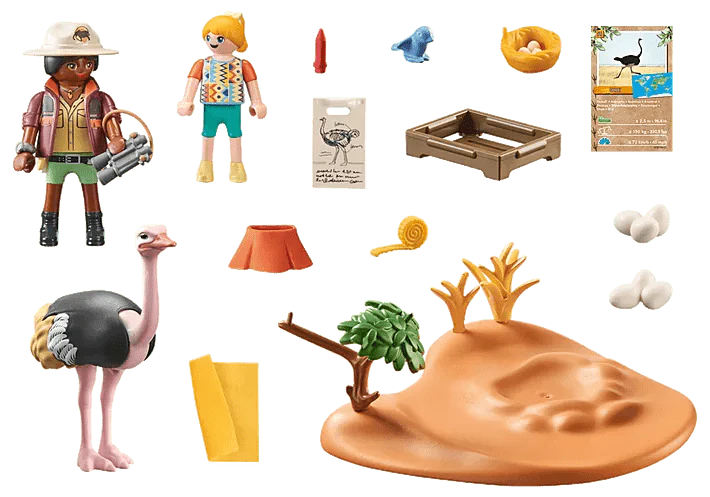 Get to know and love the world with the sustainable Wiltopia playsets from Playmobil! After their adventure in the Amazon region, we accompany the explorative patchwork family Palmer and their three children to their next destination: the African Serengeti! Here, the family studies the fascinating flora and fauna of this extraordinary region, like the ostrich. The ostrich family is about to have offspring. Papa ostrich takes over the brood care - the leg part can be removed so that the ostrich can "incubate" the eggs.