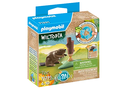 Add another interesting animal to your WILTOPIA collection with the beaver. With PLAYMOBIL WILTOPIA children get to know and love the great diversity of our planet's fascinating animal and plant world. The beaver can move its hind paws and tail. The set includes a beaver as well as a plug-together tree trunk with gnawing place for "felling" by the beaver.