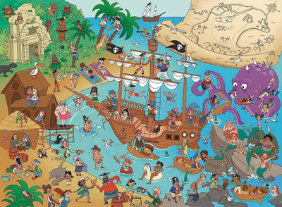 Embrace your inner pirate in this pirate mania puzzle! How many pirates do you count? Pirates, mermaids and other beachgoers gather in this bay, where are they off to next? Maybe the scroll holds some clues!