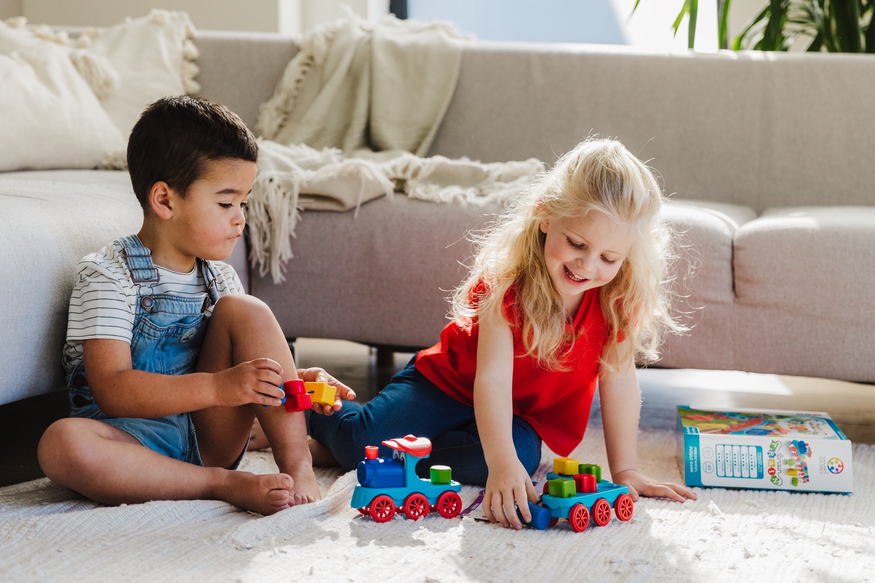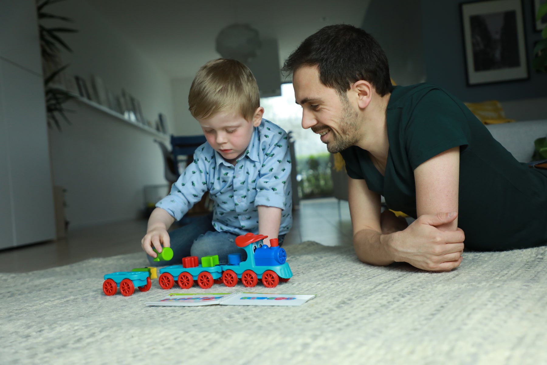 Train your brain with this colorful shape sorting game…that doubles as a toy! Can you match the shapes as shown in the challenge and place them in the right sequence? Each level offers fewer hints to complete your train. All aboard? Make sure that the wagons are connected to the steam engine before you depart!