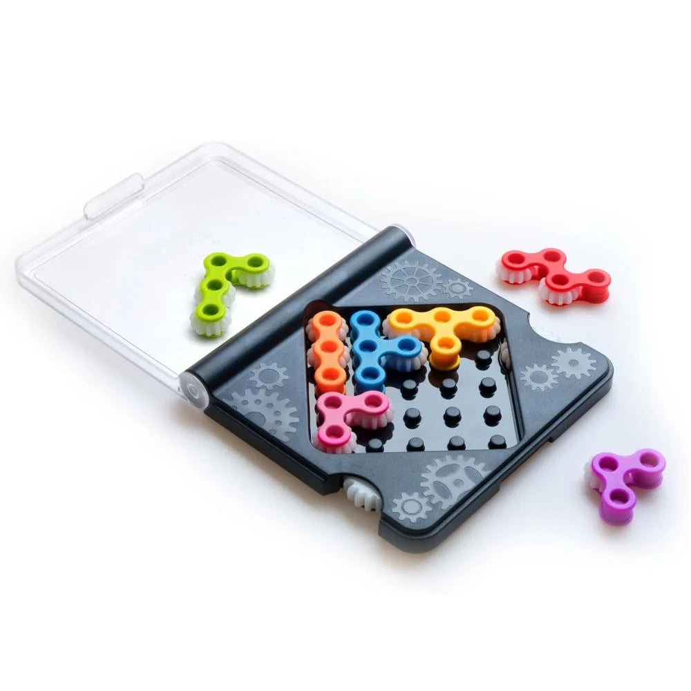 An IQ game that will put your brain in high gear! Can you fit all the gears on the game board? When you have the correct solution, the pieces will connect…and the big wheels on the sides of the gameboard will spin together! Includes 120 challenges, from easy to expert.