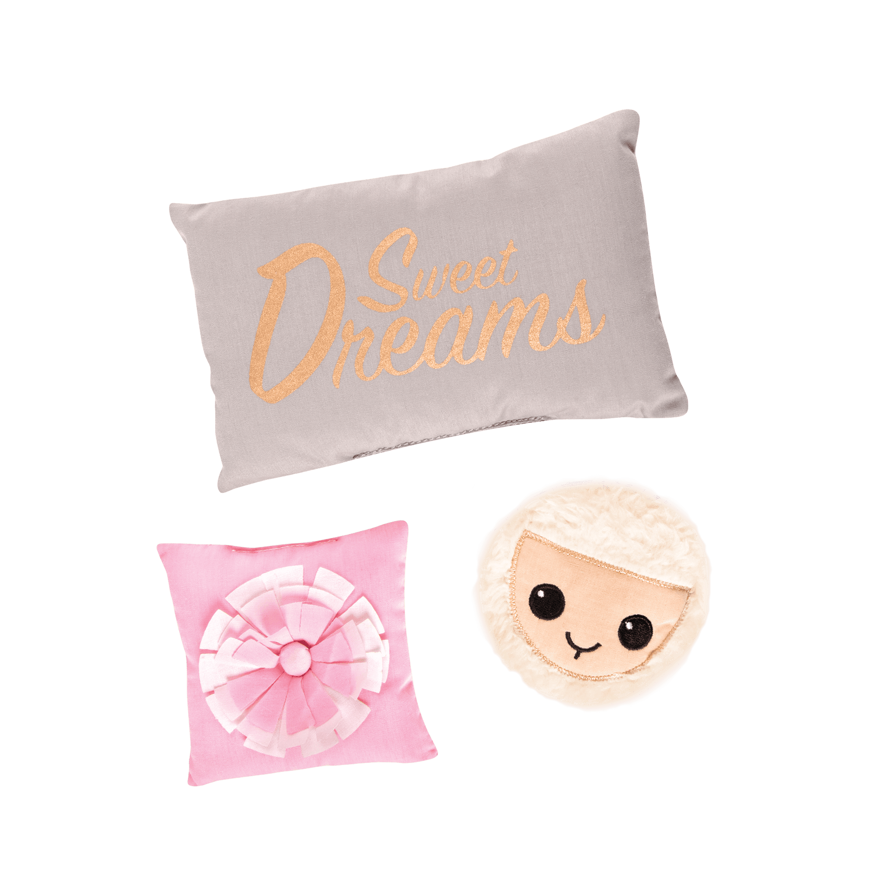 Give your 18-inch doll a fancy bedroom makeover with the Our Generation Sweet Dreams scrollwork bed! This cute, copper-toned bedframe is decorated with scrollwork hearts and curls and has a lightweight metal construction that makes it durable for years of play. It's perfect to pass on from this generation to the next! The Sweet Dreams accessory comes with a comfy mattress, blanket, and three pillows that your doll can organize after you teach her how to make the bed! Why not read her a bedtime story before you say goodnight? Just place the bed beside yours and pick out your favorite book. You'll both be having sweet dreams together! (Dolls sold separately)