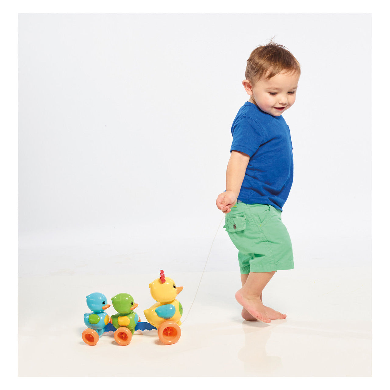 Cute pull-along ducklings in bright, bold colours that quack happily as they walk behind their mum helping children develop their understanding of movement, spatial awareness and manual dexterity through play.