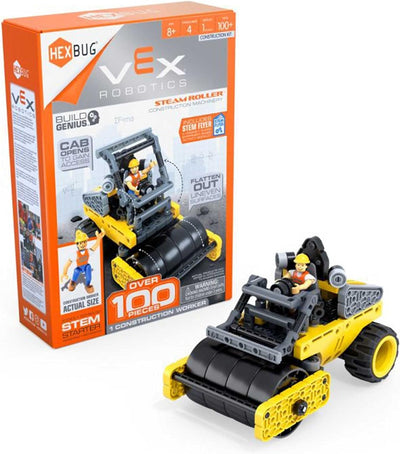 Keep rolling with the VEX Robotics Steam Roller by HEXBUG! Building onto VEX Construction Collection, this construction build is loaded with features including a large rolling drum, active steering capabilities, and a control seat for your VEX mini-figure worker! Utilizing the STEM-based VEX IQ construction system, this set includes over 100 pieces for you to build and engineer your very own steam roller!