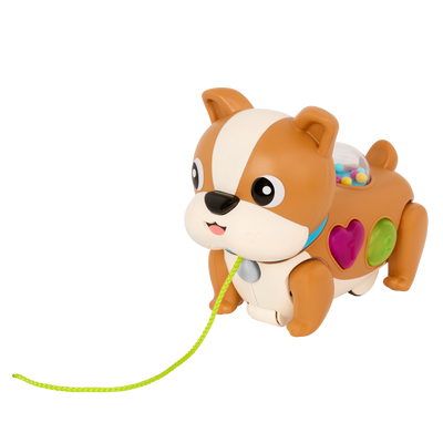 This lil' puppy is ready for a stroll! The Walk Along Puppy from B. toys is a classic pull toy with a sensory twist. Toddlers can easily hold on to the string and take this push toy with them wherever they go – they'll love to watch its little legs move! This pull-along dog can be babies' best friend as they crawl, and it will stay by their side as they start walking too. Crawling or walking, kids will get a kick out of the colorful bead popper on the puppy's back and can press the buttons to learn numbers and shapes. Not to mention, playing with this wooden pull toy promotes creativity, improves dexterity, develops hand-eye coordination, and keeps little ones active! Recommended for children 6 months and over.
