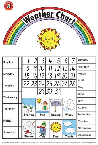 This sturdy wipe clean poster is heaps of fun for young learners. Children can pick the days, months of the year and the weather conditions.